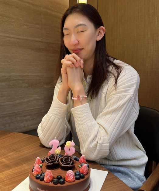 中国女篮内线核心韩旭更新社媒,晒出自己手捧蛋糕的照片,为自己的26岁生日庆生,并且配文写道“按时长大。”